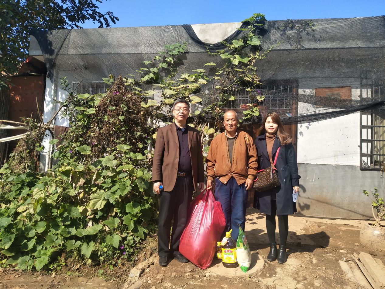 公司董事長王長隨和工會主席樊琳杰、黨務干部高曉莉來到貧困戶家慰問